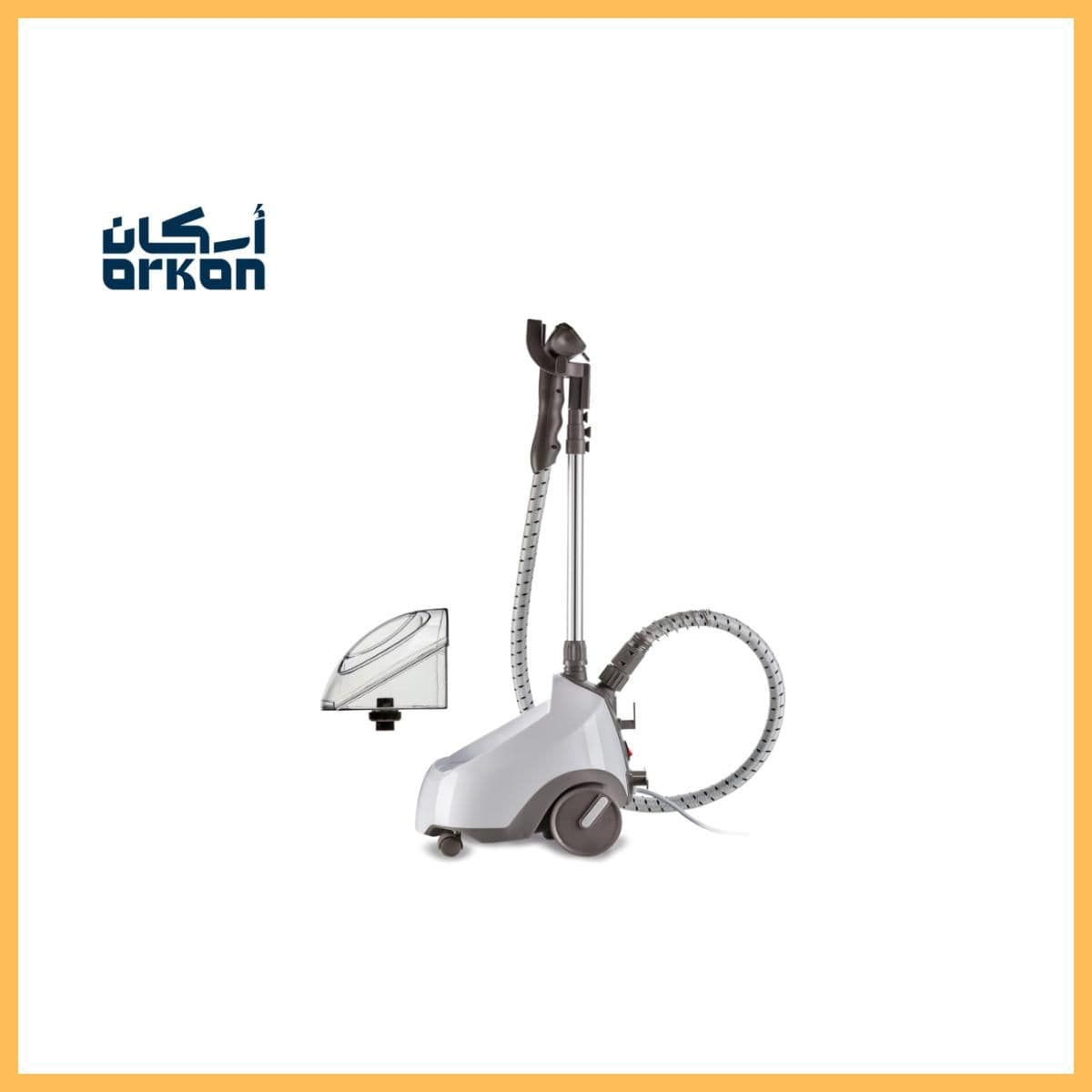 The KENWOOD Garment Steamer with a 2L Water Tank (1500W) delivers powerful steam performance to remove wrinkles quickly and safely from all fabric types. It features fast heating, continuous steam flow, an adjustable telescopic pole for hanging clothes, and a stable base for convenient daily use. A perfect choice for achieving professional results at home.