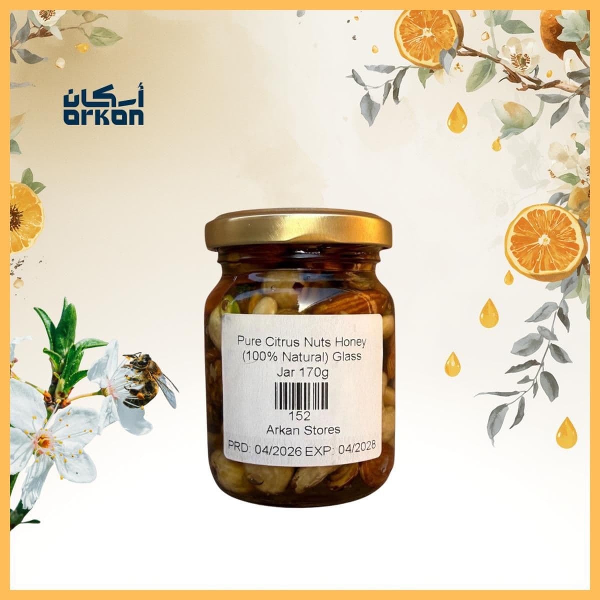 Pure Citrus Honey Nuts (100% Natural) Glass Jar 170g